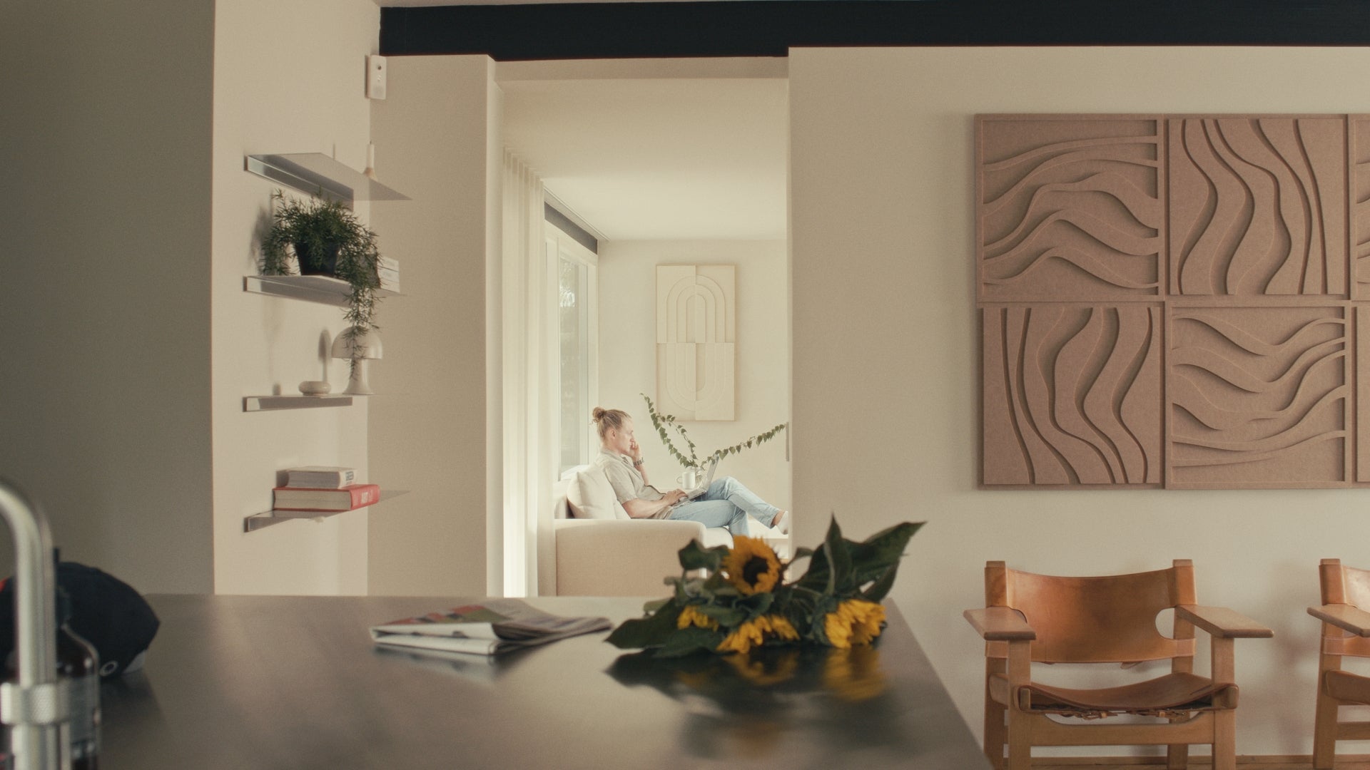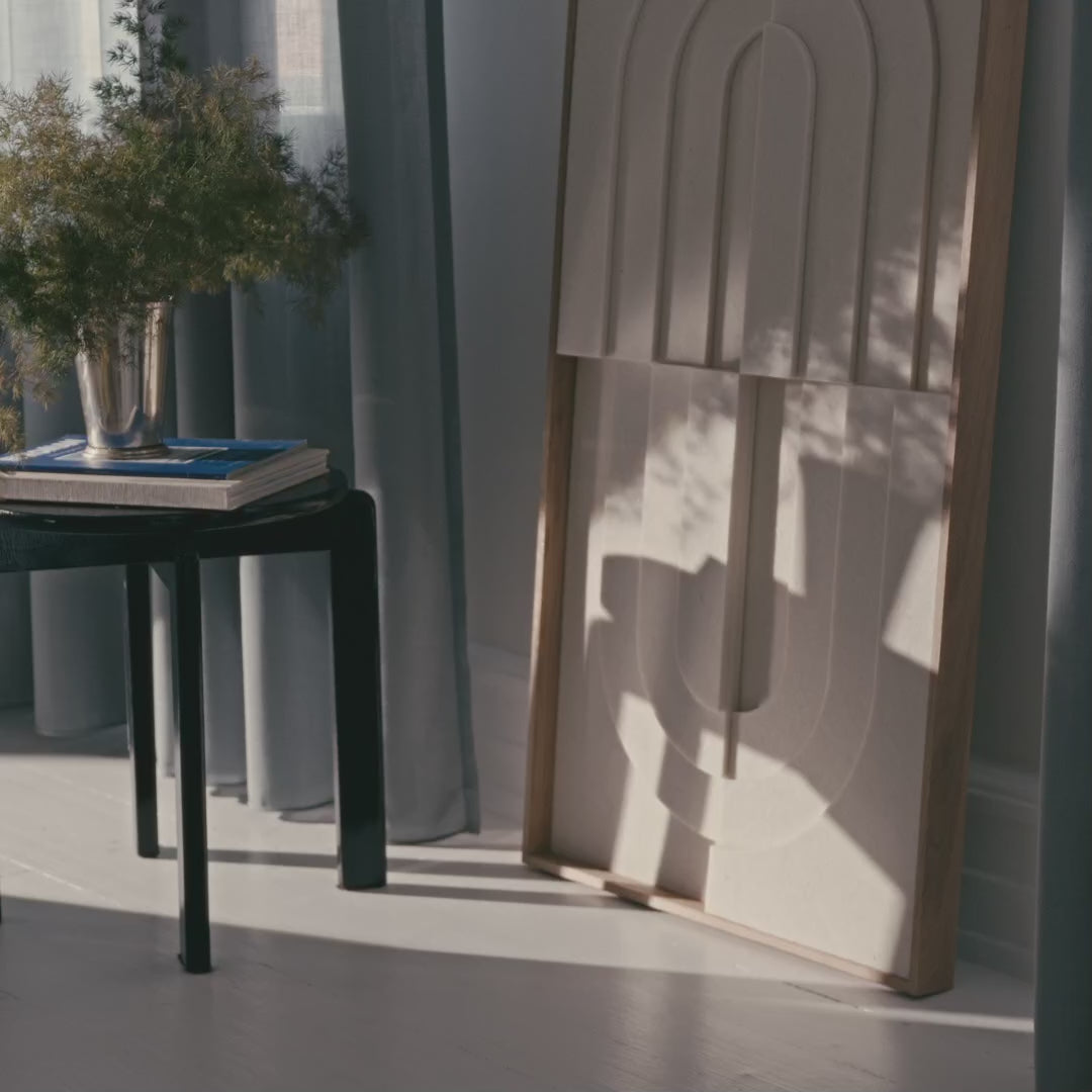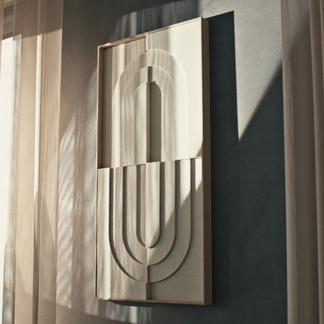 Our acoustic artworks are made from the Kvadrat Really series. They create high-quality upcycled wool from textile waste; A new engineered material made from upcycled wool, which is made from 70% post-production ‘waste’ textile and 30% thermoplastic binder.